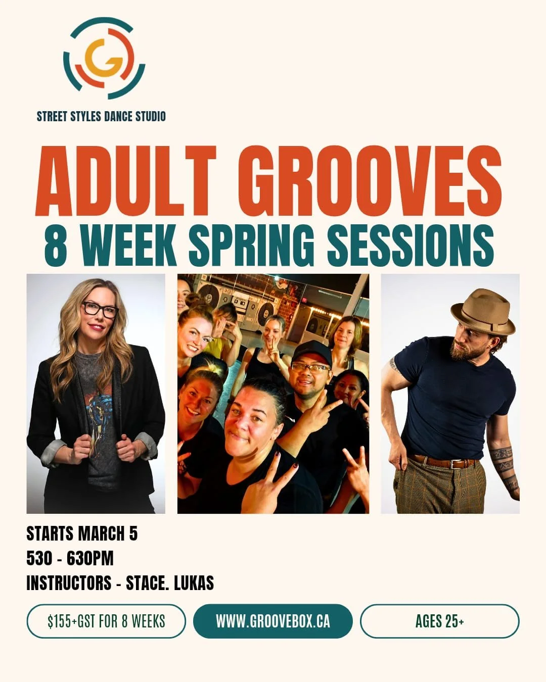 Adult Grooves (ages 25+) adults wanting to be in a fun and High energy setting to explore old school party grooves from the night clubs and house parties back in the day! Slowly advance into more new school movement and perform with friends.