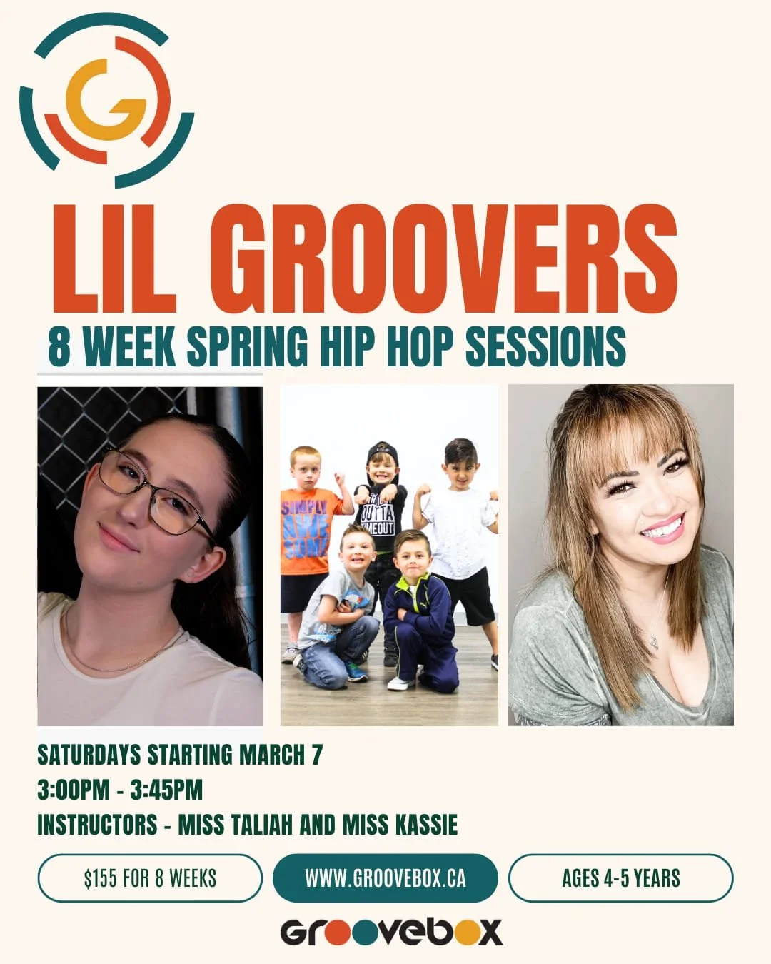 Lil Groovers (4-5) pre school street dance program for Littles. Unassisted. Progressive weekly hip hop creative movement set to high energy, family friendly, popular music. Learn the basics of Hip Hop party grooves, freestyle skills and head to toe coordination with your friends